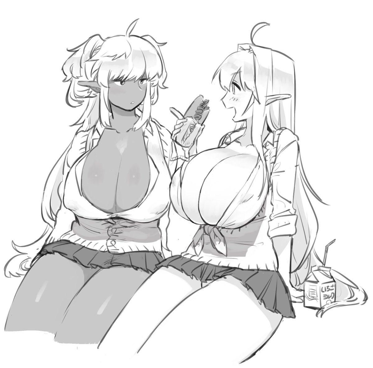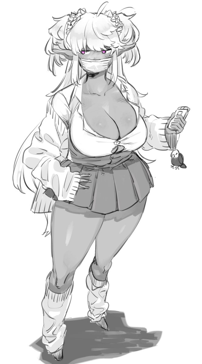 乳裏に風を当て涼む白黒エルブン