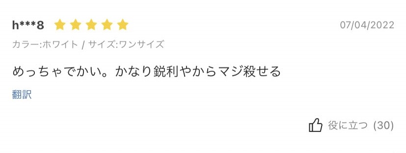 めっちゃでかい。かなり鋭利やからマジ殺せる