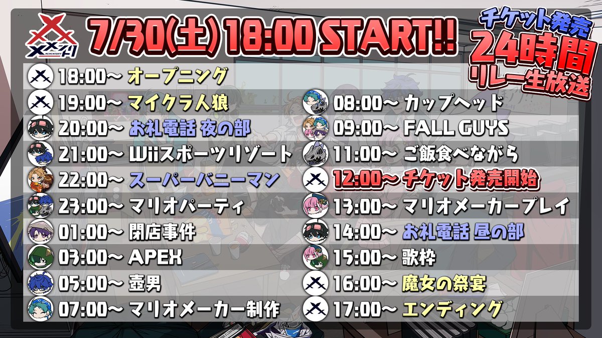 【メメントリチケット販売記念24時間リレー!】
