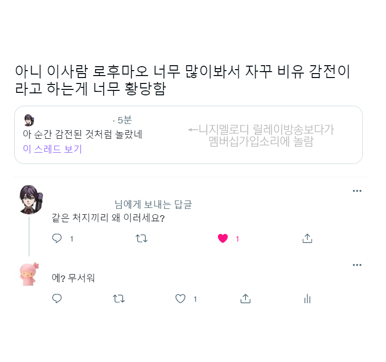 아니 니지페스 방송 로후마오 거 보다가 황당해서... 켄모치 저 자연스러운 뻐큐 뭐야?
