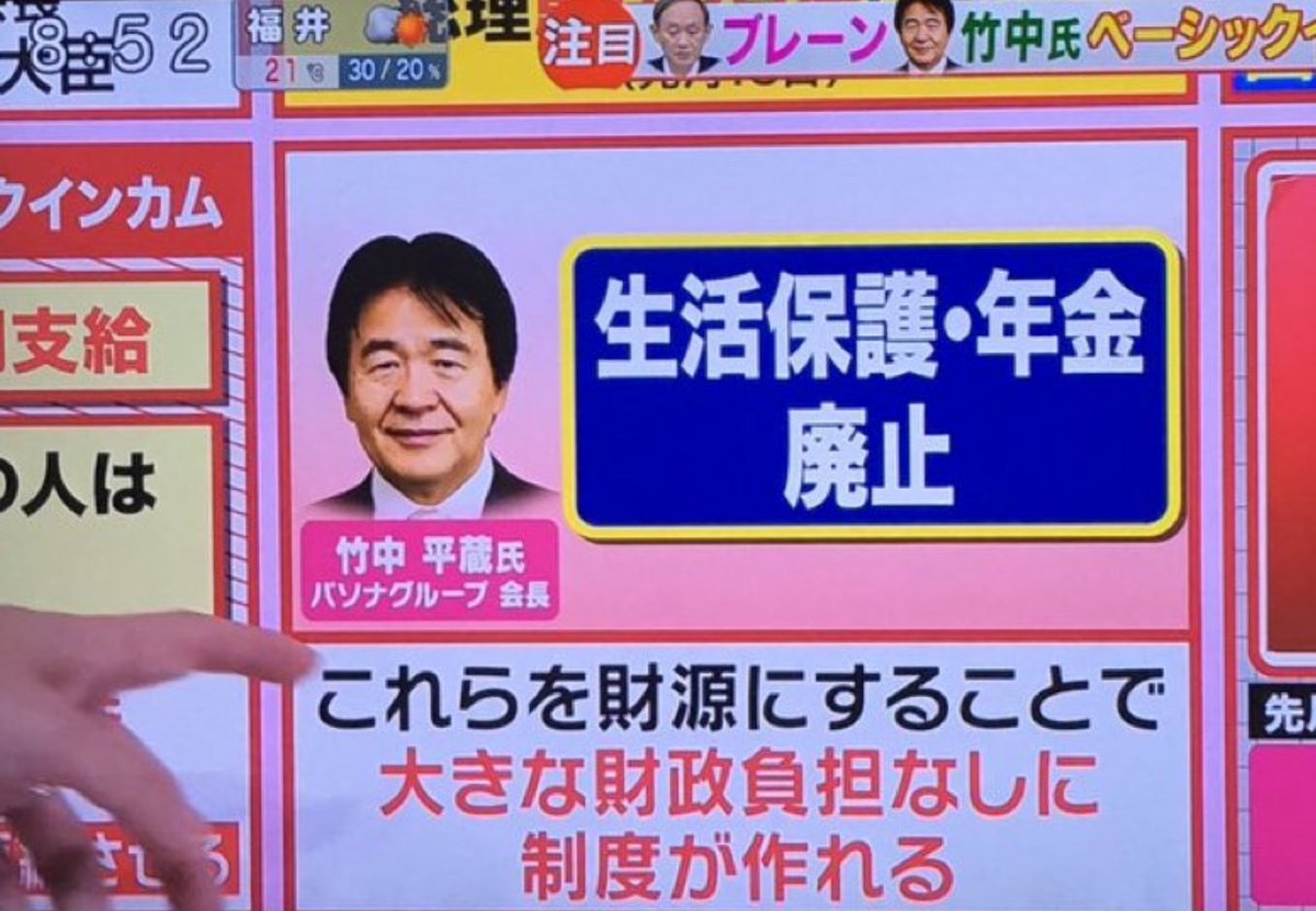 【話題】竹中平蔵氏「生活保護・年金、廃止 」案