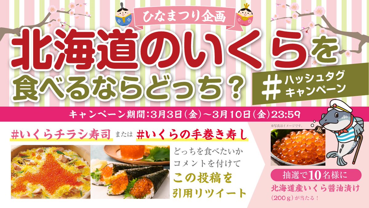 #北海道ぎょれん のアカウントフォロー&投稿リツイートで #北海道日本ハムファイターズ との限定コラボ「#しゃけまる」グッズが当たる⚾
