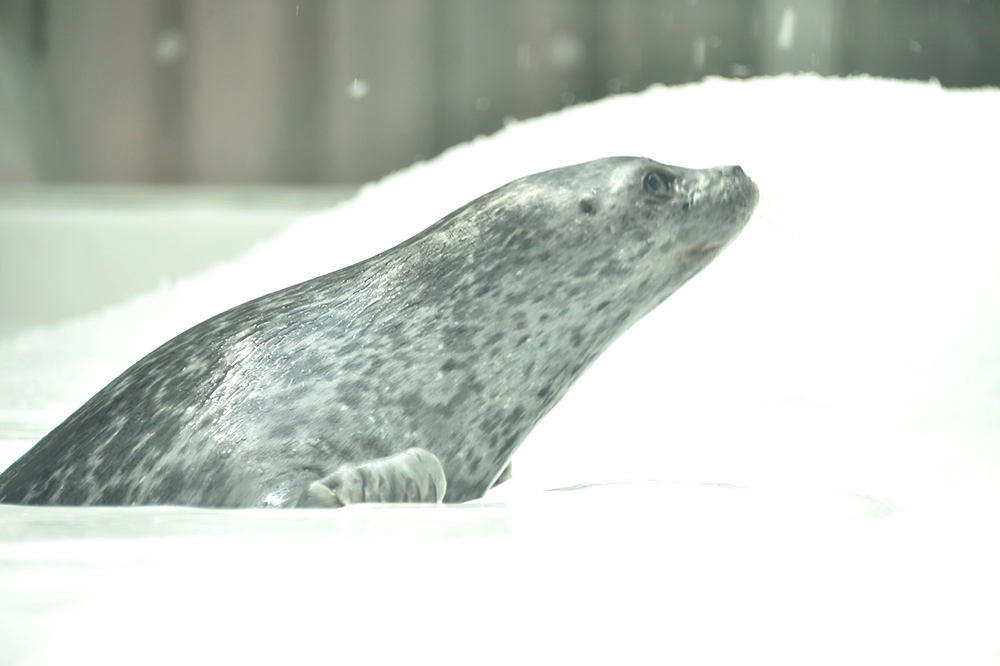 海遊館では、ワモンアザラシたちが夏も快適に過ごせるよう、雪を降らす時間を長くして、温度調整に気を付けています☃️