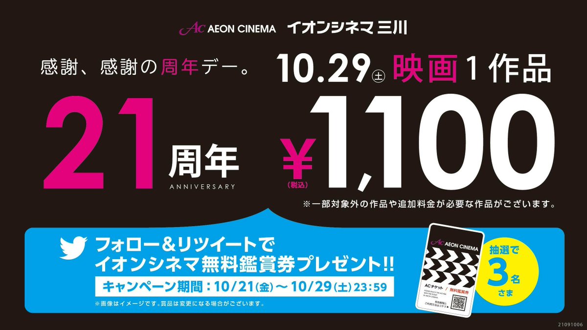 イオンシネマ三川はおかげさまで開業2⃣1⃣周年🎉