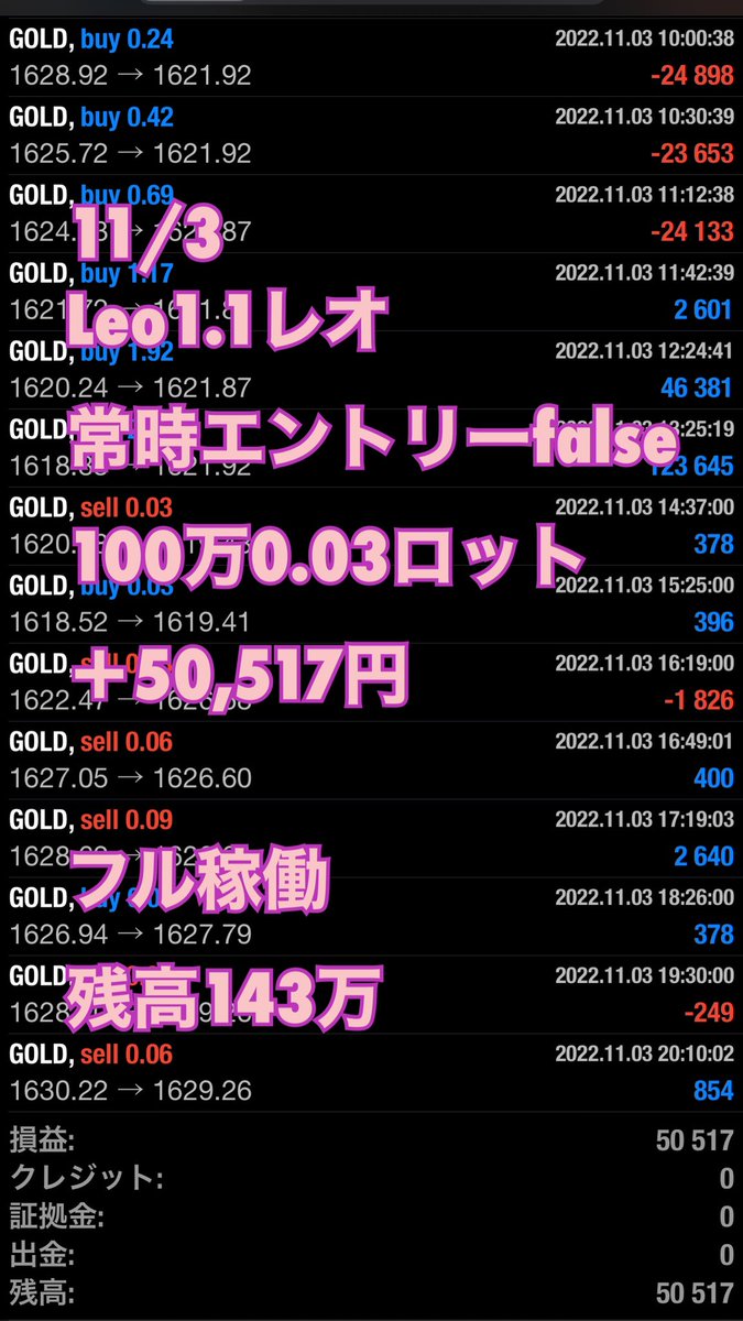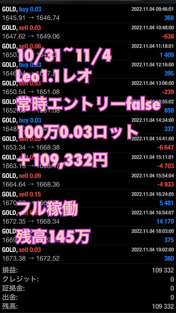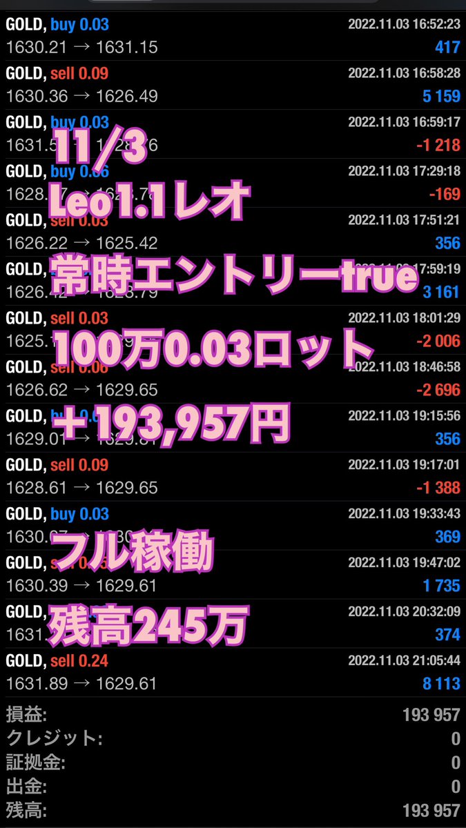 11/8のゴールド暴騰もLeoはスルーしていて無風でした✨♥️