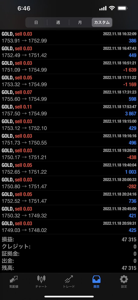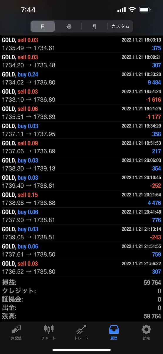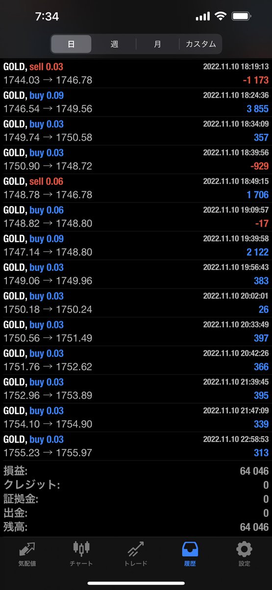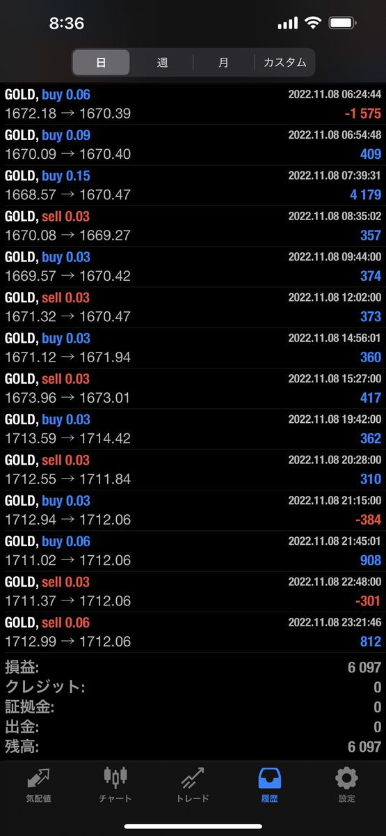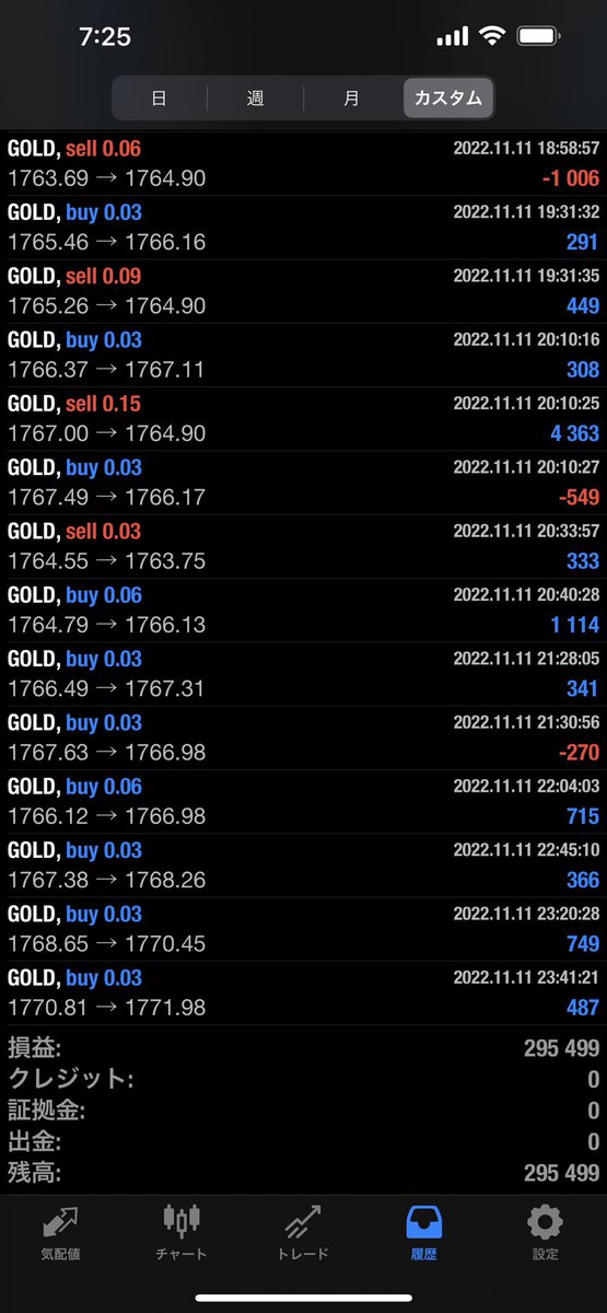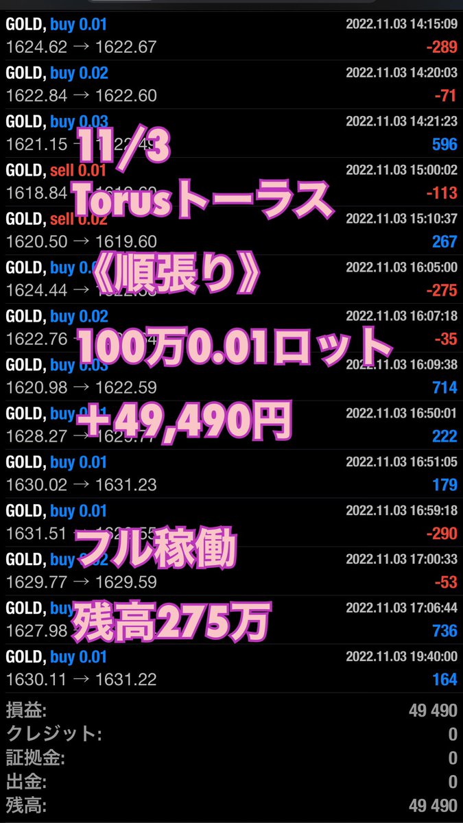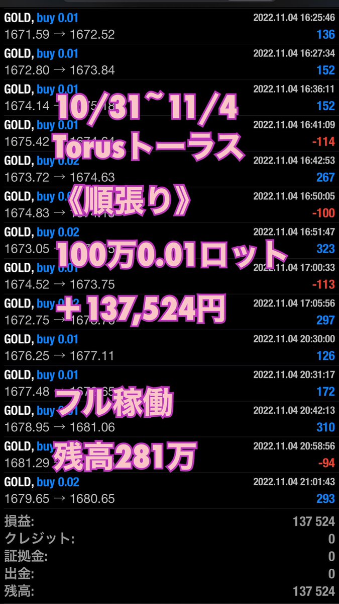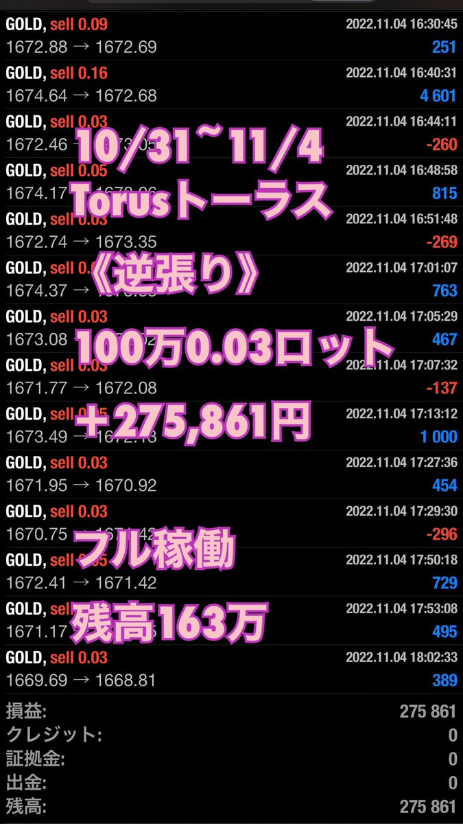 先週の米国中間選挙ゴールド500pips暴騰もフル稼働で生き残ってます😆✨👍