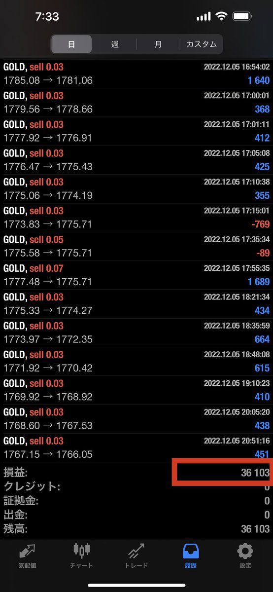 昨日のゴールド下落もまだまだ余裕ありました😆