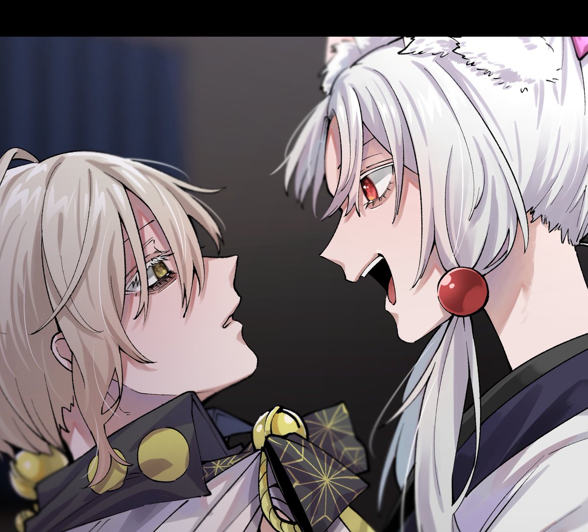 鬱な弓鶴くんと、イケメンなイタコさんです。普段描かないキャラを描けて楽しかったです☺️