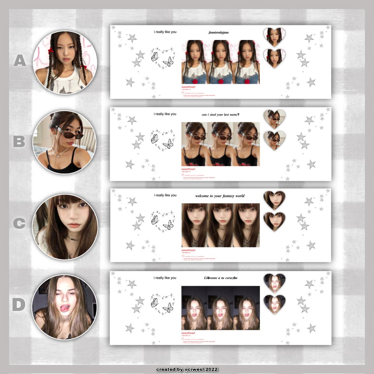 sell layout moodboard w sub winter, giselle,karina. price 3500/ea! ( all wallet no qris ) yg berminat langsung dm aku aja ya 🧸