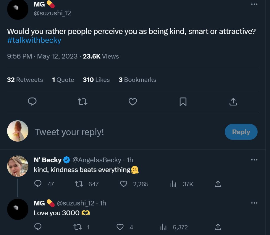น้องเบคอยากให้คนอื่นมองว่าน้องเบคเป็นคนใจดี เป็นคนฉลาด หรือเป็นคนน่าดึงดูด