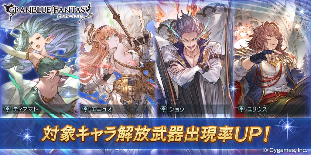 【グランブルーファンタジー】本日19:00にレジェンドガチャを更新!対象キャラ解放武器の出現率がUP! #グラブル