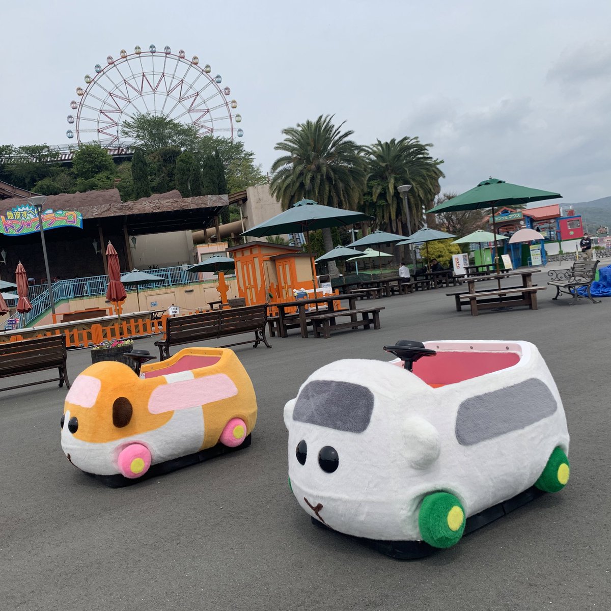 花やしきさんのポテトとシロモ、パンダカー先輩と一緒に皆さんをお待ちしてまーす🧡