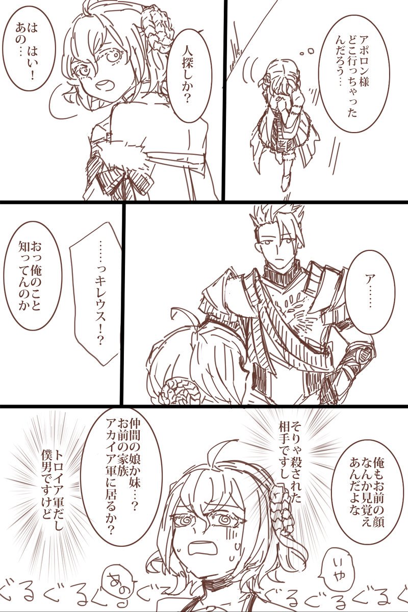 召還されたばかりのパリスちゃんとパリスと気付いてないアキレウスによるアキパリ