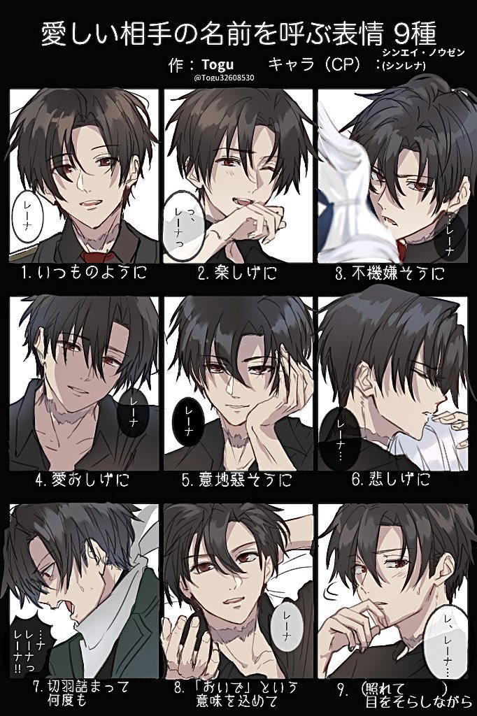 シンエイノウゼンで「愛しい相手の名前を呼ぶ表情9種」