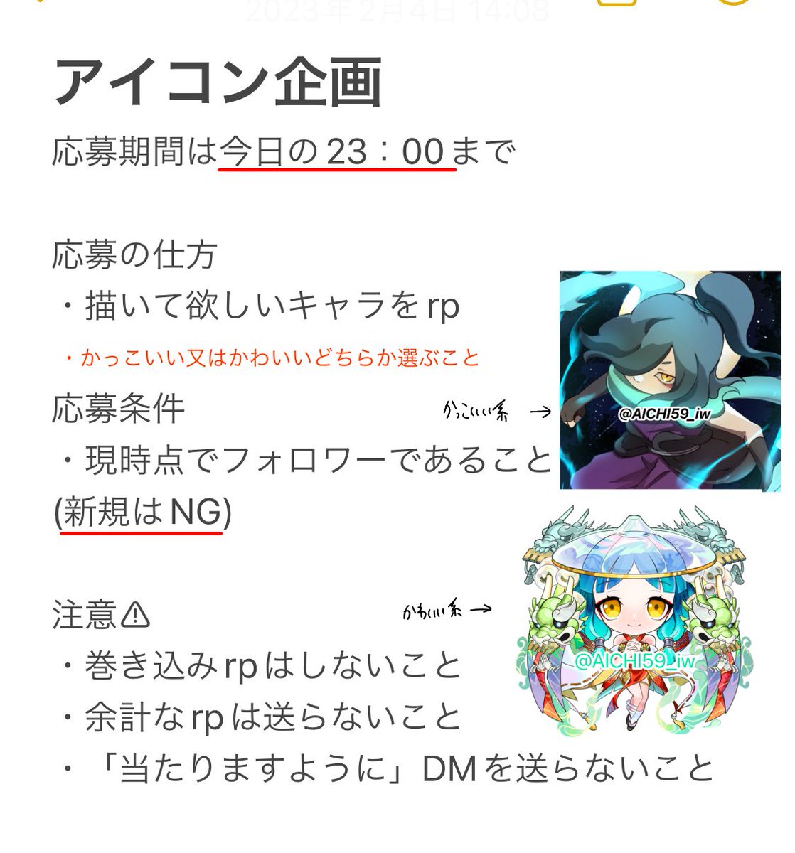 アイコン企画 ルールをしっかり読んでから応募してください🙏さもなくば、、、💪 良ければいいねとリツイートをお願いします☺️ 疑問な点がありましたらこのツイートの続きのツイートまでお願いします。 沢山の応募をお待ちしています!
