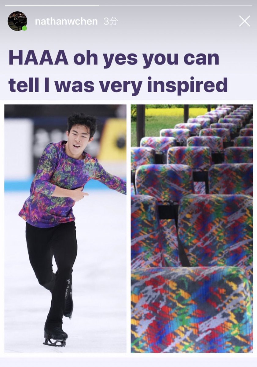 前のFSの衣装も散々「観光バスの座席みたい」と言われていたけど、それを自ら画像つきでHAAAと笑って返すクールなネイサンが私は大好きです
