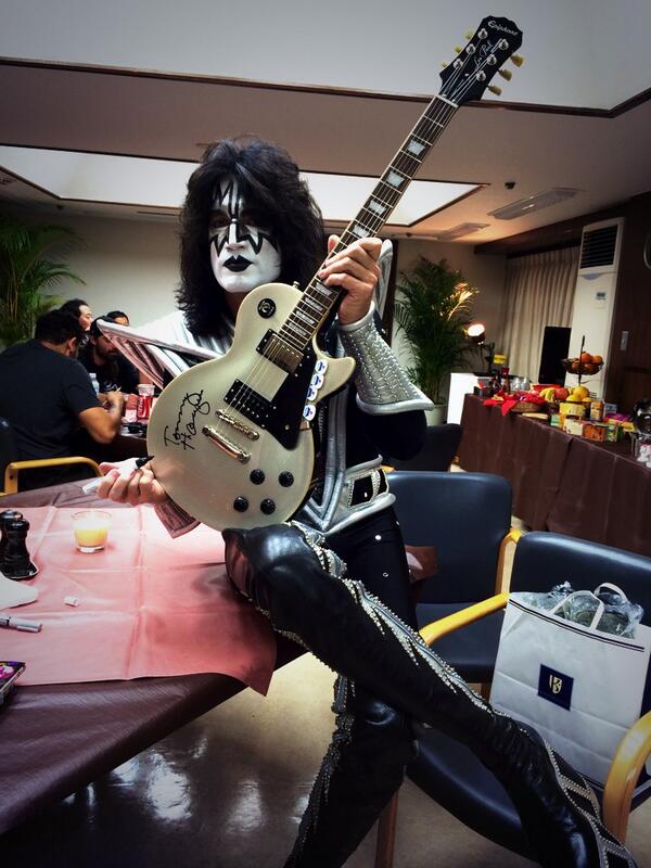 キッス武道館公演!ステージ前の楽屋のTommy Thayer!こちらのサイン入りエピフォンシグネチャーギターは実際に本日のステージで演奏されました! @tommy_thayer @KISSOnline