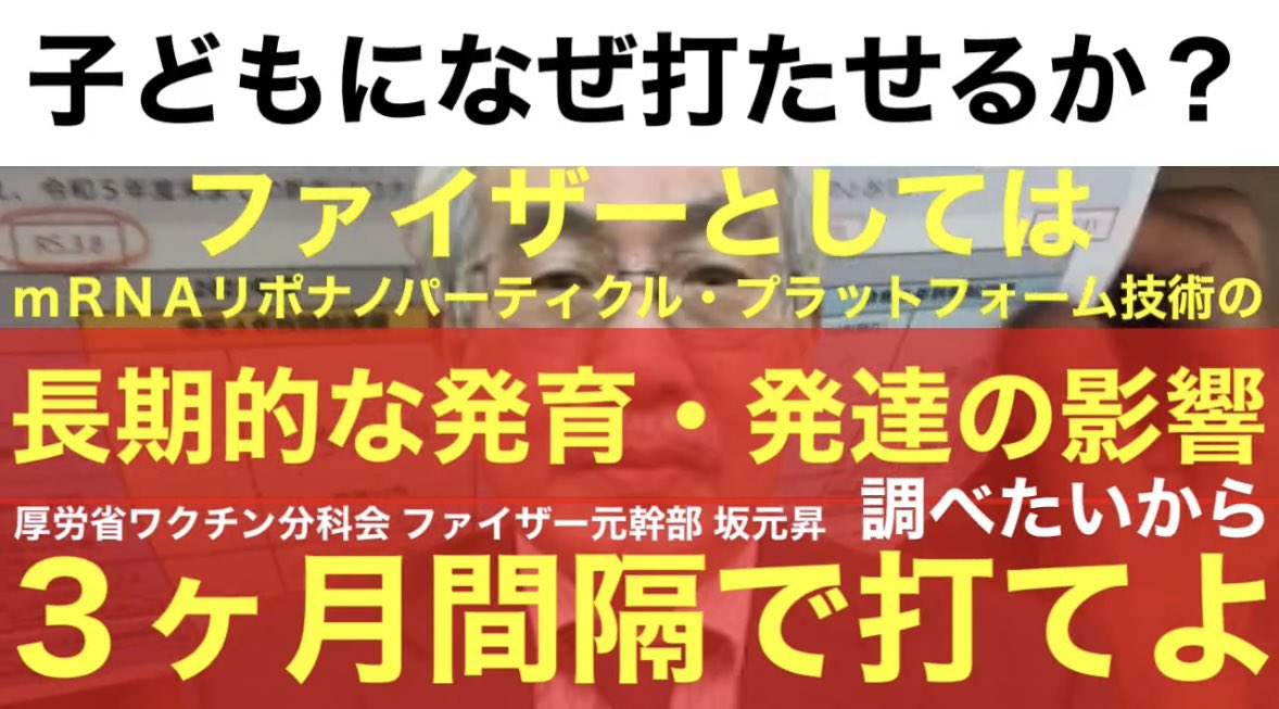 厚生労働省ワクチン分科会の元ファイザー坂元昇医師が、5〜11歳の子どもへのCOVIDワクチンを3ヶ月間隔で接種させたい裏には、「mRNAリポナノパーティクル・プラットフォーム技術による薬剤の投与が、子どもの長期的な成長過程で、発育および発達障害がどれだけ副作用としてあらわれるかという"実験"… twitter.com/i/web/status/1…