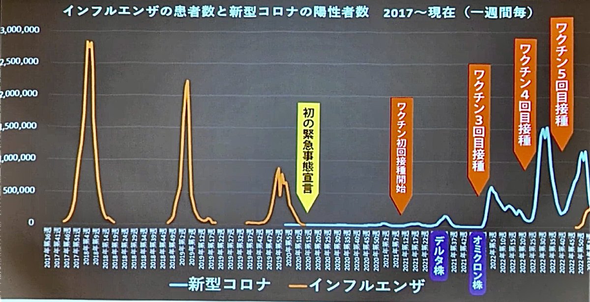 インフルエンザの患者数と新型コロナウイルス陽性者数を2017年からグラフにしてほぼ確定的に分かることは