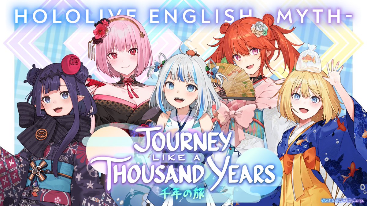 Happy and honored to announce that I did the logo and jacket/thumbnail comp for holoMyth's first full collab song, Journey Like a Thousand Years (千年の旅)!! ft. art by @ninomaeinanis!!
