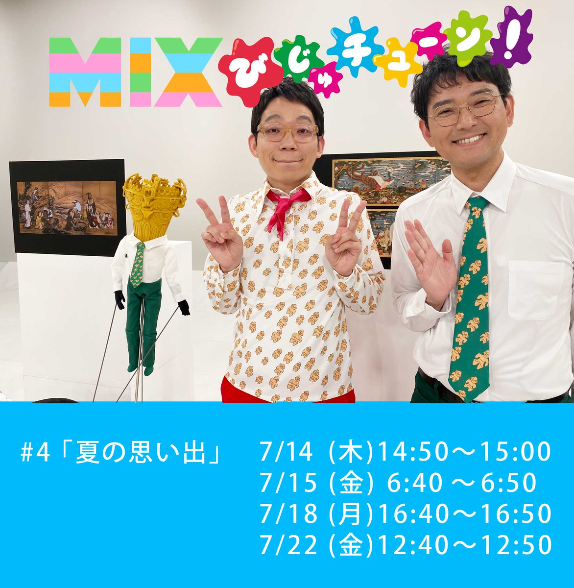 7月に放送が4回(本放送+再放送3回)あります。「MIXびじゅチューン!」は8月以降も月に1本ペースで新作を放送。