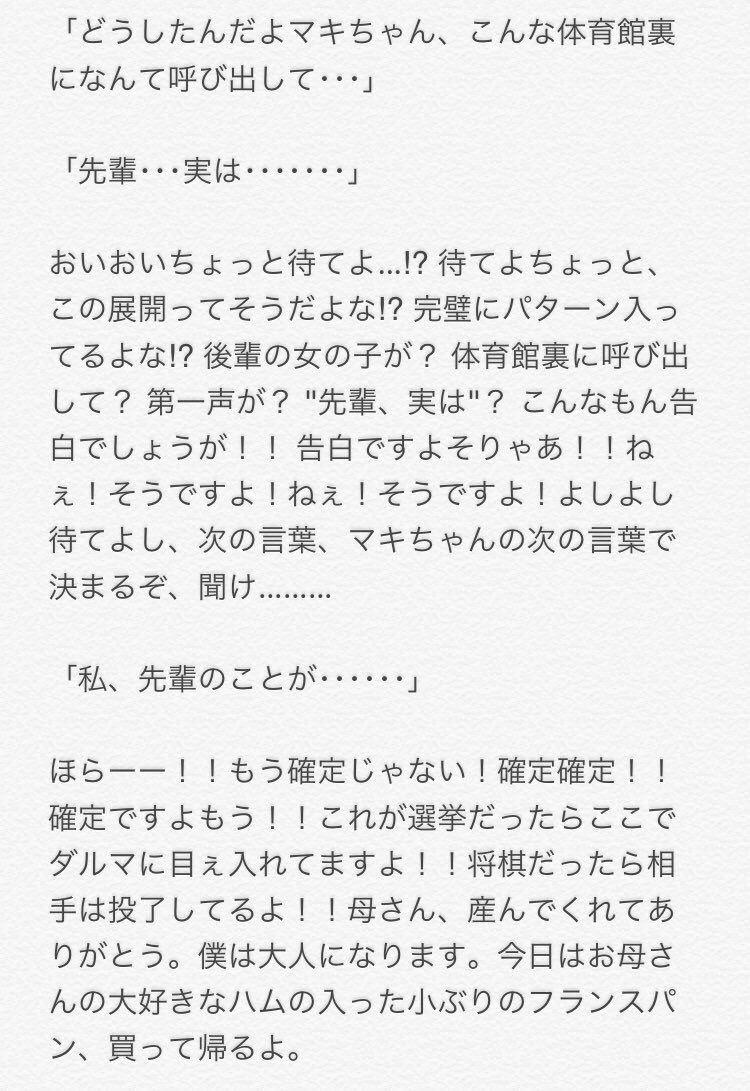 「な〜んつ〜かなぁ〜、良い悪いの話じゃなくて、よ?も〜ちっとばかし熱めになってみてもいいんでないかな〜?な〜んて、俺なんかにしてみれば思っちゃうワ・ケ。ふすっ(笑) 一応ハイって言ってみましたって顔スか(笑) オケオケ、んま、分かってくれなくて結構ですケドも、と(笑)」