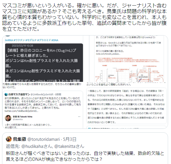 なのでバカバカしい話ですが、こんな無意味な毒枠珍を止める方法がもうないんですね。超過死亡が増えても自粛のせい。癌が増えたって因果関係は不明といえばよい。唯一止める方法があるとして、基準を超えるDNA混入が避けられない技術であることの証明。だから利権者はそれを一番嫌がっているんです twitter.com/1A48wvlkQc6mVd…