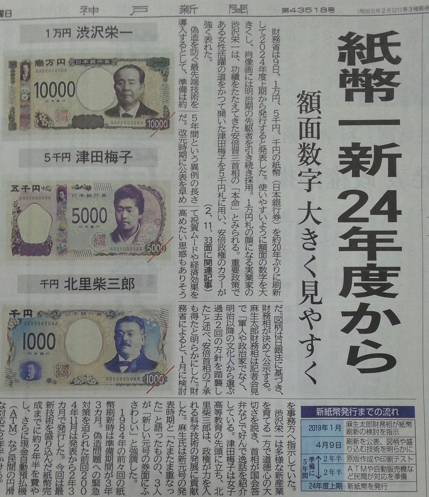 紙幣一新は5年後なのに、なぜ、この時期に発表したのか。後半の地方統一選や参院選を控え、改元発表とともに「新時代」を演出し安倍政権の実績としてのアピールか。各局のワイドショーも紙幣刷新を好意的に取り上げているが、冷静な目を持たねば…。