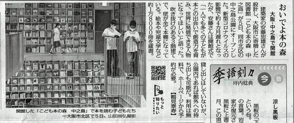 建築家の安藤忠雄さんが設計し、大阪市に寄贈した図書施設「こどもの森 中之島」が5日、開館した。絵本や図鑑など約1万8千冊がそろっているという。でも、お忘れではないですか。大阪には70万冊の蔵書を誇っていた府立国際児童文学館があったことを。それを誰かが難癖をつけ閉館に追いやったことを…