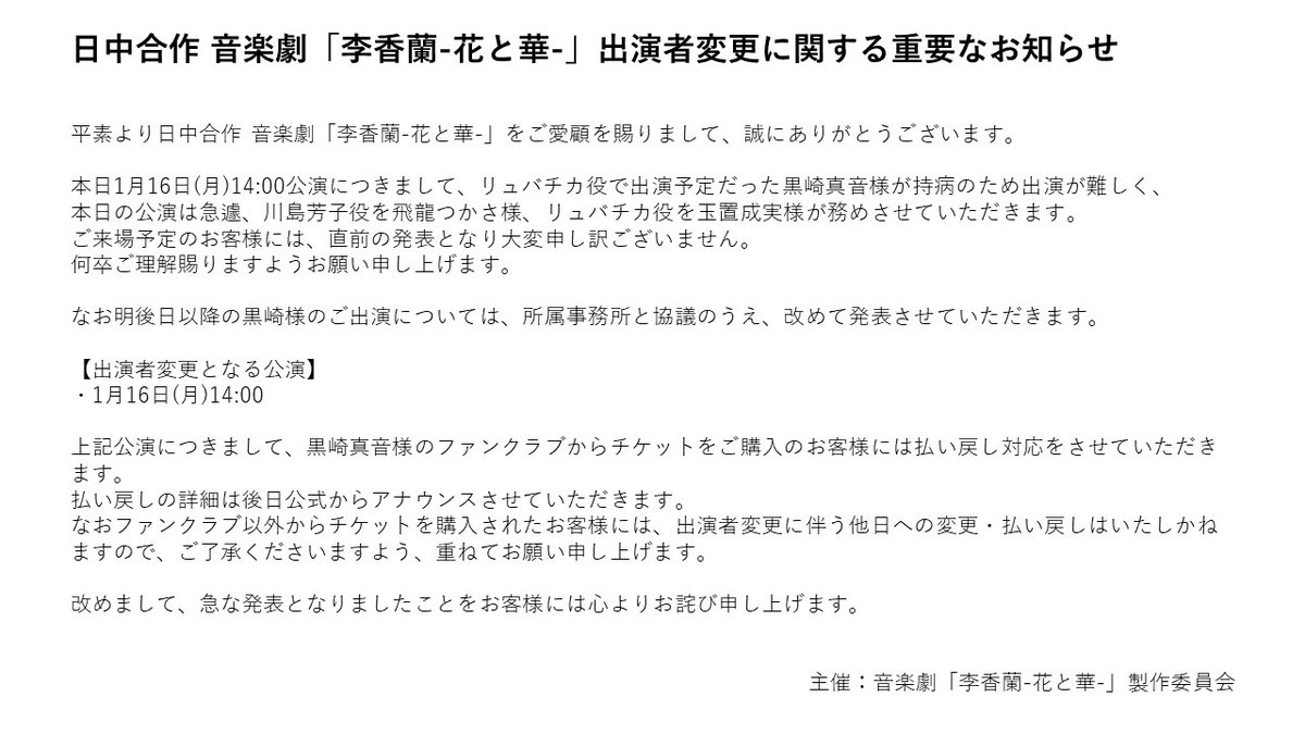 ① #音楽劇李香蘭 公式Twitter(@musical_rikoran)をフォロー