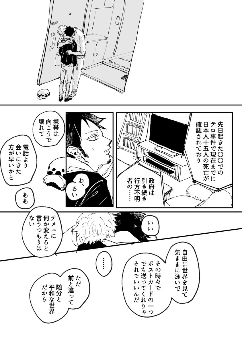 ローがドフラミンゴに届かなくて、それでもどうしようもなくなった瞬間に助けに来たルフィ先輩の事をマジで愛してる私VSどうしても届けたかった、報いたかった恩人があの瞬間に助けにくるという原作生存IFとしてこれ以上ない場面設定に泣き崩れる私