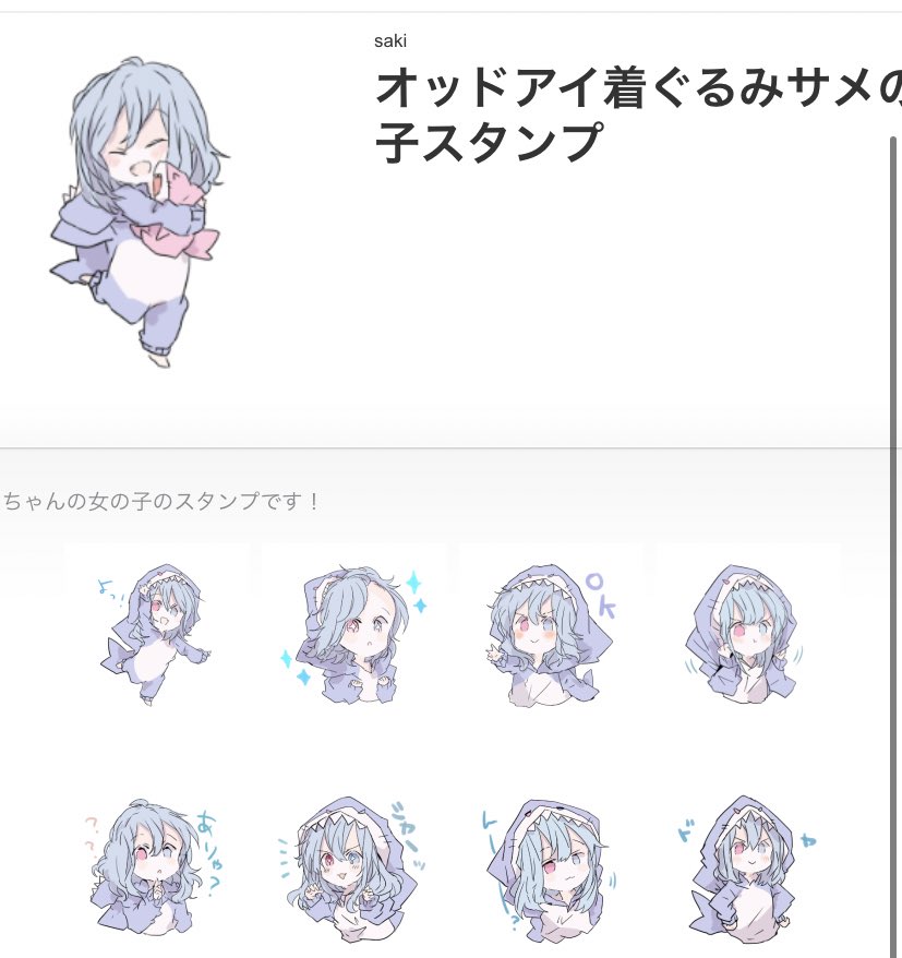 [オッドアイ着ぐるみサメの子スタンプ]