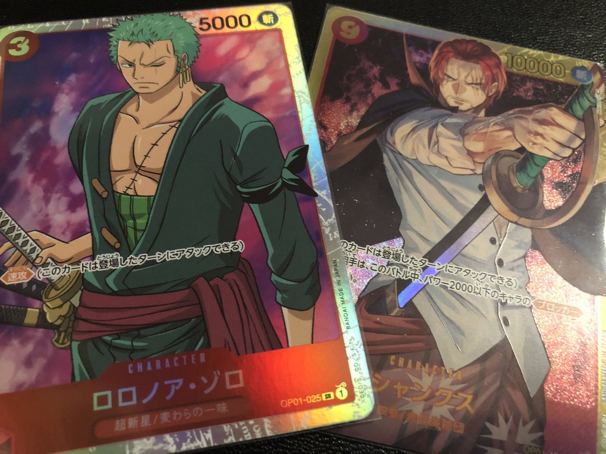 カード整理してたんですけど、ゾロ1枚だけ余りあるので欲しい方居ますか?💦 (4枚じゃなくてすいません🥹笑) シャンクスはおまけで🥺 この投稿に何かしらの反応があった方から選ばせてもらいます!🙋‍♂️ 明日の17:00までにDM送ります😊