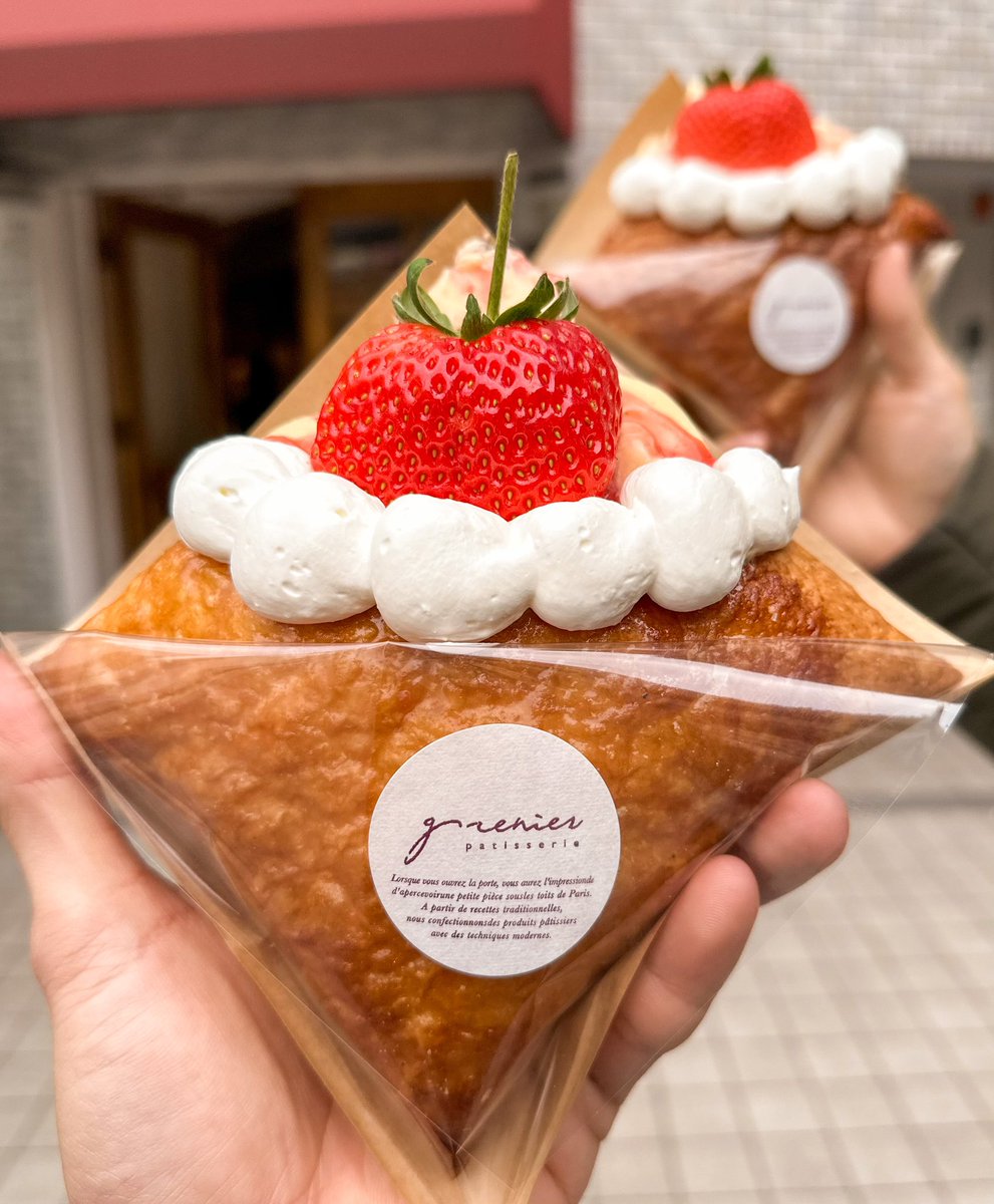 店名:グルニエ 最寄り駅:梅田駅(大阪) 大粒いちごが乗ったミルフィーユパイが最高🍓 サクサクなパイ生地の中にはたっぷりのカスタードクリームが入っておりあま~いイチゴと相性抜群✨ サイズもかなり大きくボリューミーなのでスイーツ好きも大満足間違いなしです!