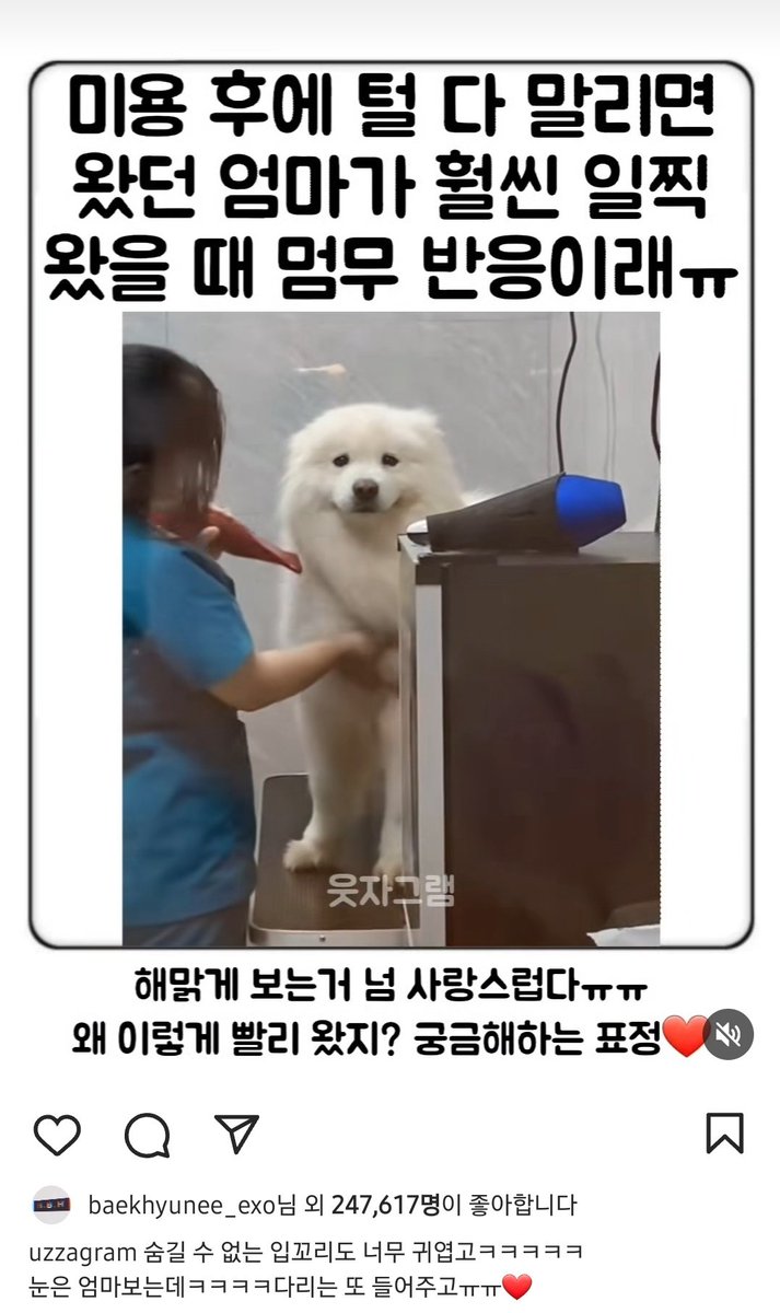 백현이 강아지 영상에 좋아요 눌렀어ㅋㅋㅋㅋㅋㅋㅋㅋㅋㅋ♥♥ instagram.com/reel/CtOaGWsAL…