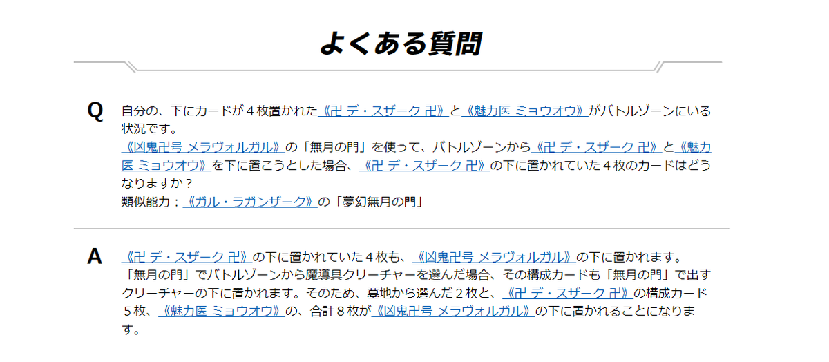 《魅力医 ミョウオウ》がいるとき、無月の門で重なっている状態のドルスザクを無月の門の素材にした場合の裁定などが追加