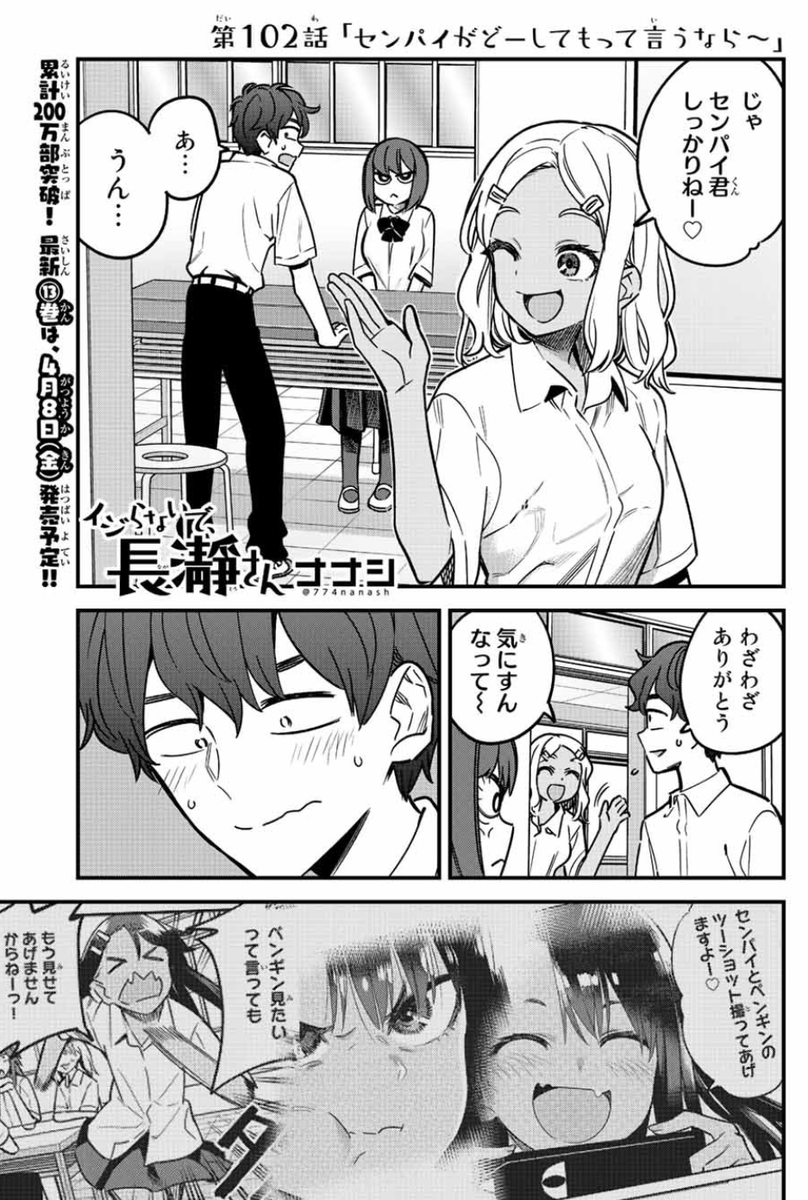 マガポケでイジらないで、長瀞さん102話「センパイがどーしてもって言うなら~」更新されました。