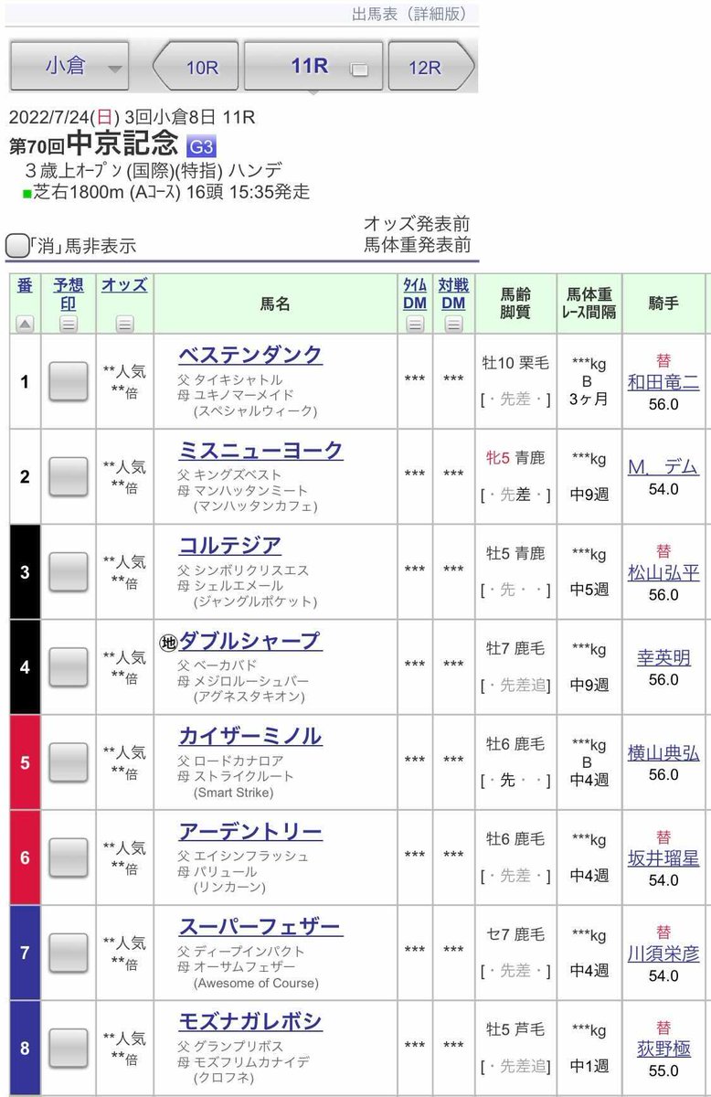 【#中京記念 ハンデ】🏇トップハンデはカデナの57.5kg、🏇最軽量はシャーレイポピーらの52kg。🏇ファルコニアらは56kgとなりました。📢 #競馬 #keiba jra-van.jp/smartphone/