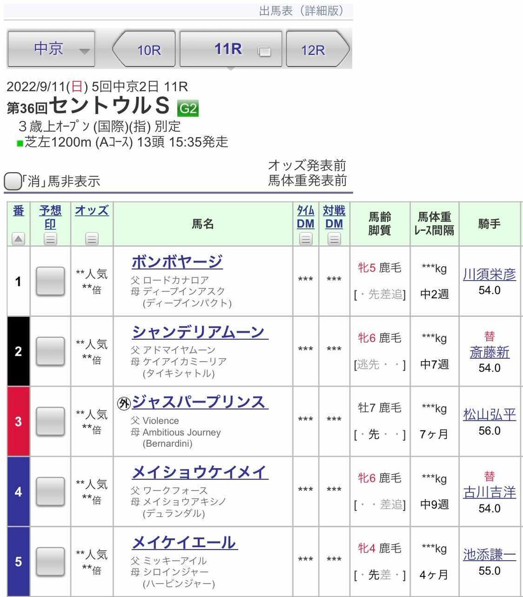 【#セントウルステークス】枠順が決定!👏 前走の京王杯スプリングCを制したメイケイエールは4枠5番、安田記念の覇者ソングラインは7枠11番となりました。