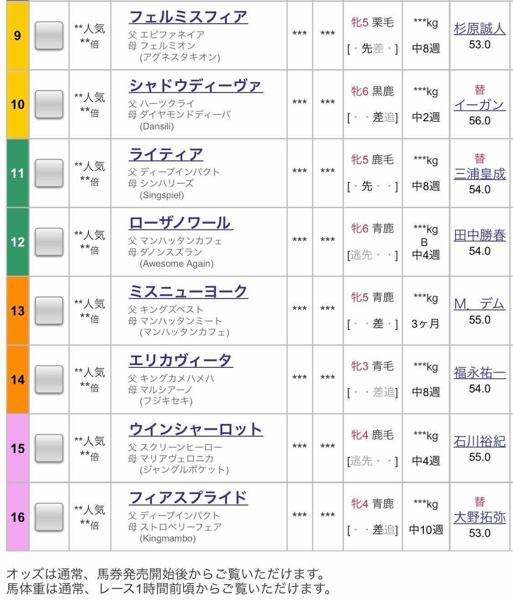 【#ターコイズステークス】枠順が決定!👏 現在3連勝中のママコチャは1枠2番、昨年のターコイズS勝ち馬ミスニューヨークは7枠13番となりました。