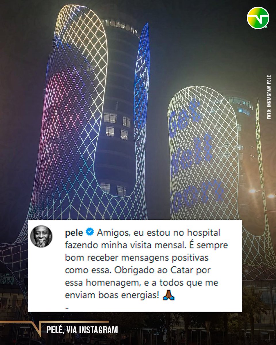 BELA HOMENAGEM! Pelé recebeu desejos de melhoras diretamente do Qatar e postou agradecendo a mensagem! #TNTSportsNoQatar