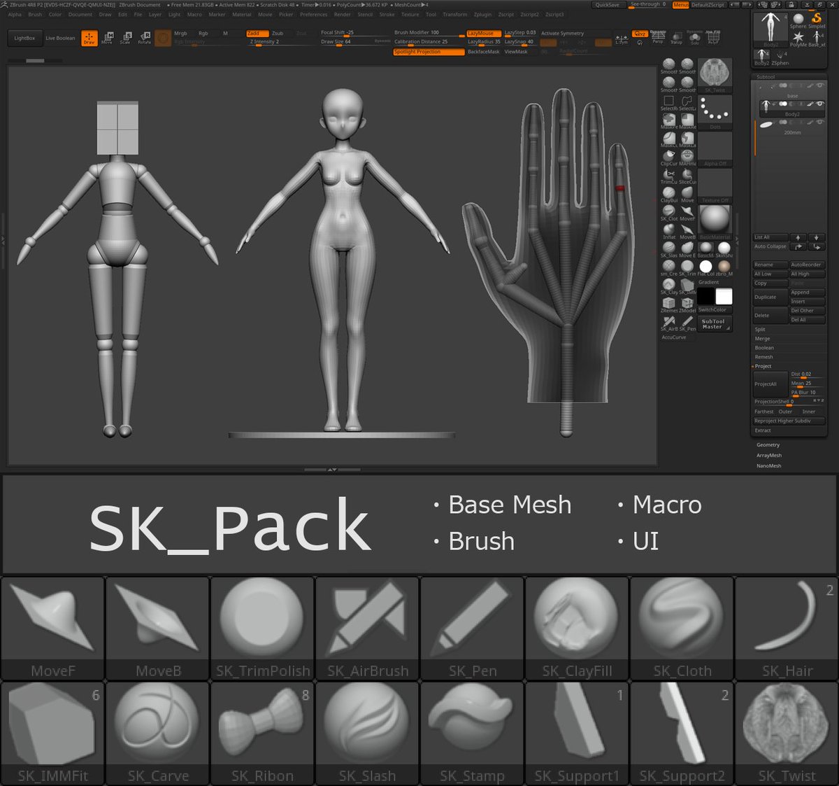 配信中に勧められたのでGrumroadに今までアップしてきたZBrushのブラシとかマクロとかまとめ直した物を公開しました。 SK_Pack(Z4R8)_v1 gum.co/YMwlD #ZBrush