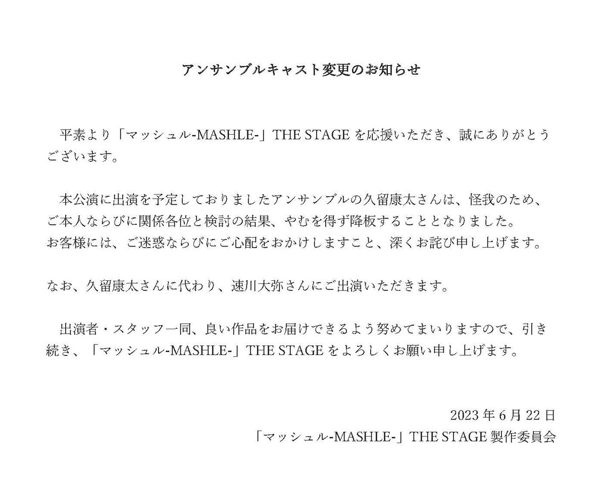 その他、#マシュステ の公演に関するお知らせは