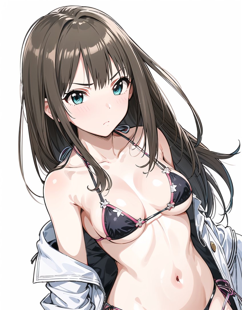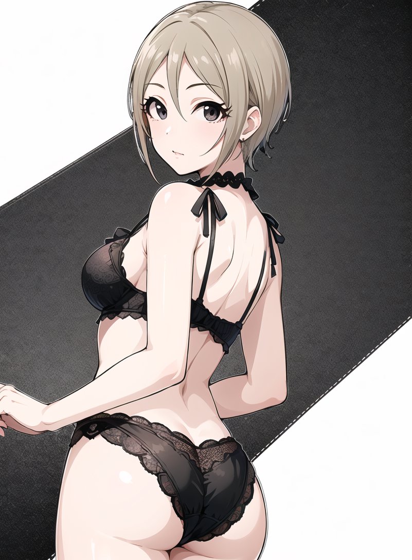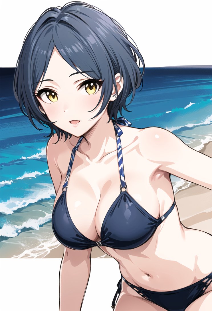 これは、Pが発注した水着と何かの手違いで入れ替わったビキニを手に(プロデューサーこういうのを私に着させたいんだ。ふーん…)と困惑するも親愛度MAXなので渋々着替える渋谷凛。 ※普段どおりPに衣装の最終チェックをお願いして、上着を脱いでお披露目した時に手違いが判明して一悶着あり。