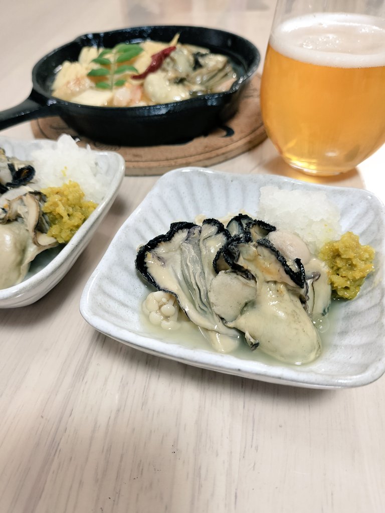 牡蠣とエノキのおろしと柚子胡椒