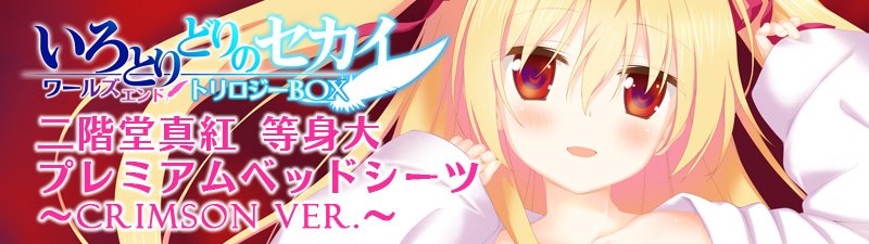 「二階堂真紅 等身大プレミアムベッドシーツ ~crimson ver.~」の情報を公開いたしました!『いろとりどりのセカイ ワールズエンド・トリロジーBOX』豪華限定版特典ベッドシーツの生地をより高級な素材、背景を白から赤へ変更しグッズとして販売いたします。 favo-soft.jp/soft/product/w…