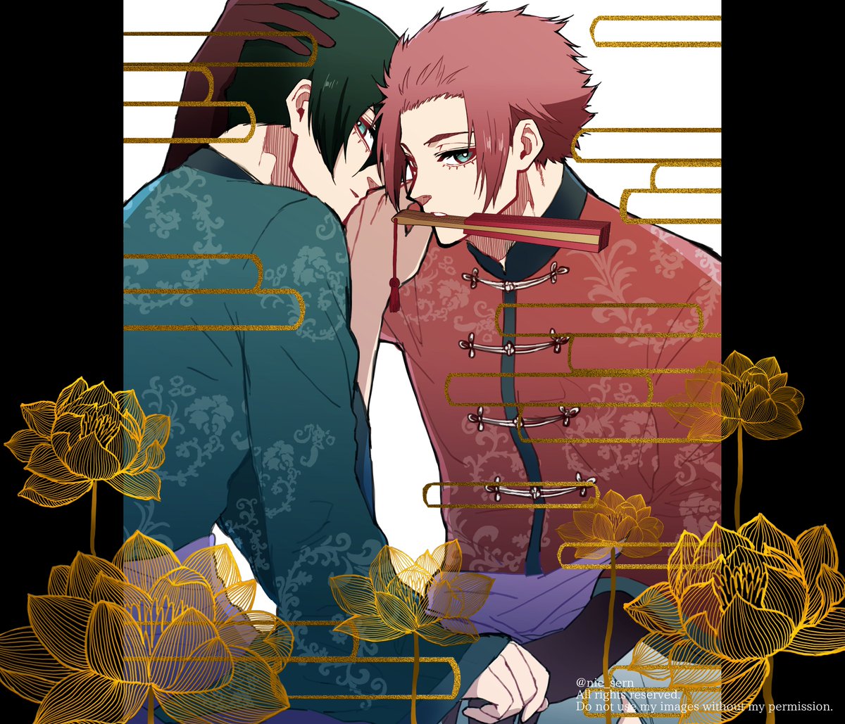 まるせるさん(@73oxsW5)のsern小説「空港へ迎えに行く弟と帰ってきた兄」の大好きなシーン描きました……あのse本っ当にカッコよすぎるんです……