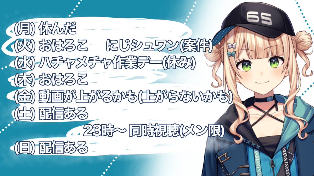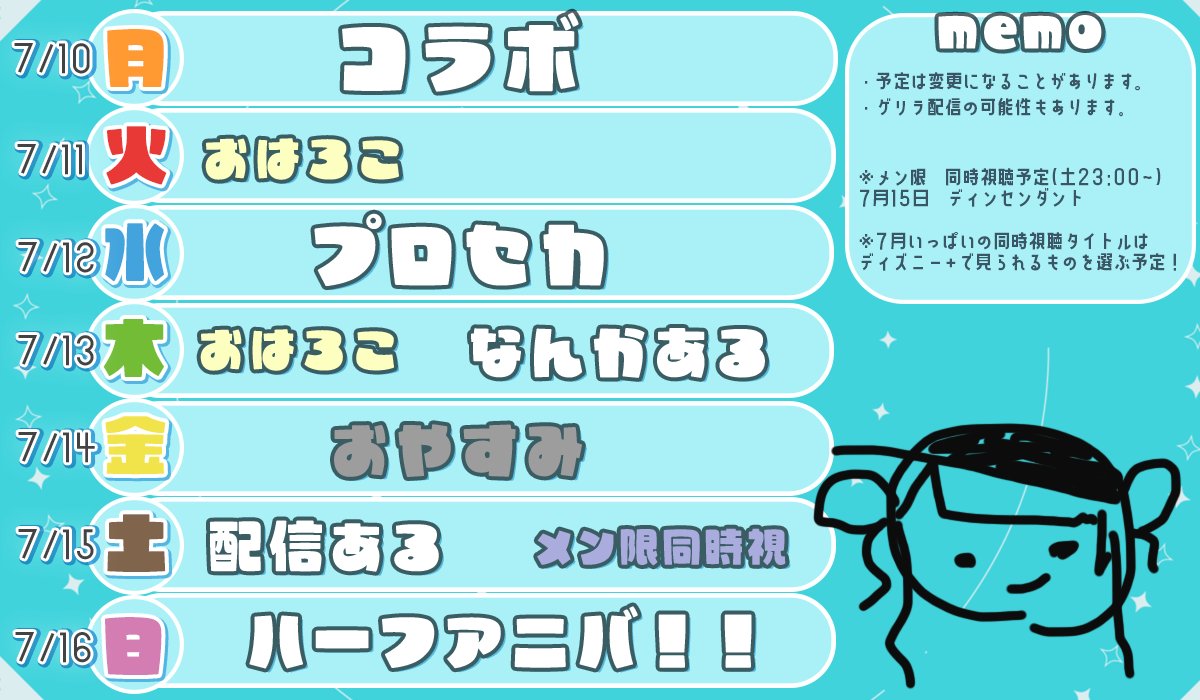 あ、でもあの、予定表出すしさ、絵日記も投稿するしさ、来週配信いっぱいするからさ…………ね?🥺🥺🥺』
