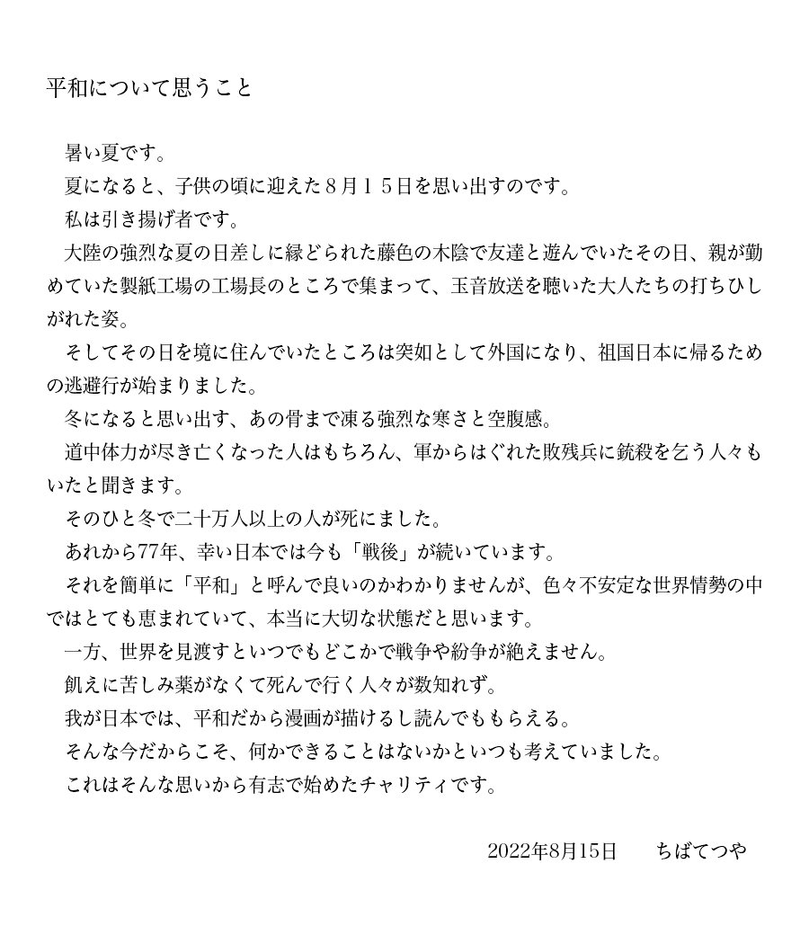 平和でないとワクワクしたり元気も出ません。一本木蛮は「平和、元気、ワクワク」を胸に色紙を描こうと思います♥(詳しくはぶら下がりとHPで‼) twitter.com/mangaka_kyokai…