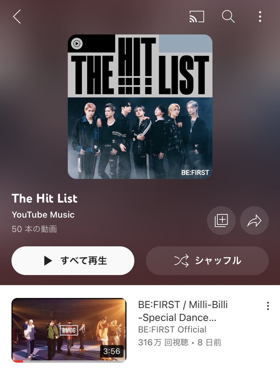 本日更新分のTHE HIT LISTのカバーと一曲目にBE:FIRST の Milli-Billi入りました😭😭😭😭